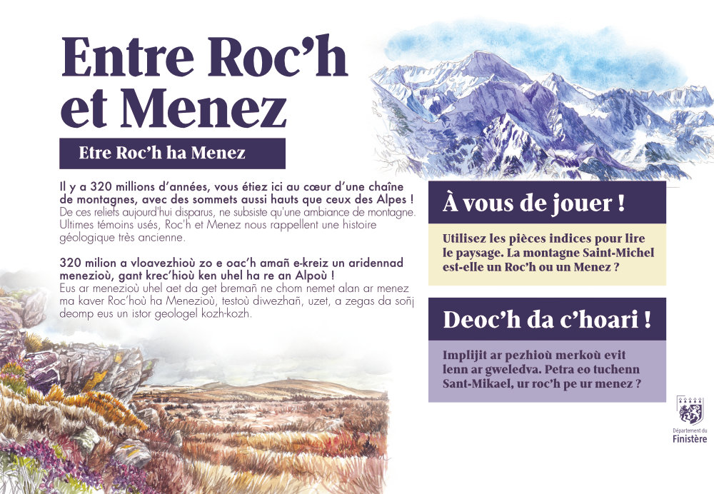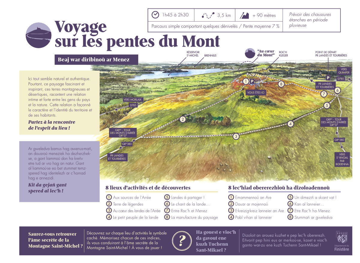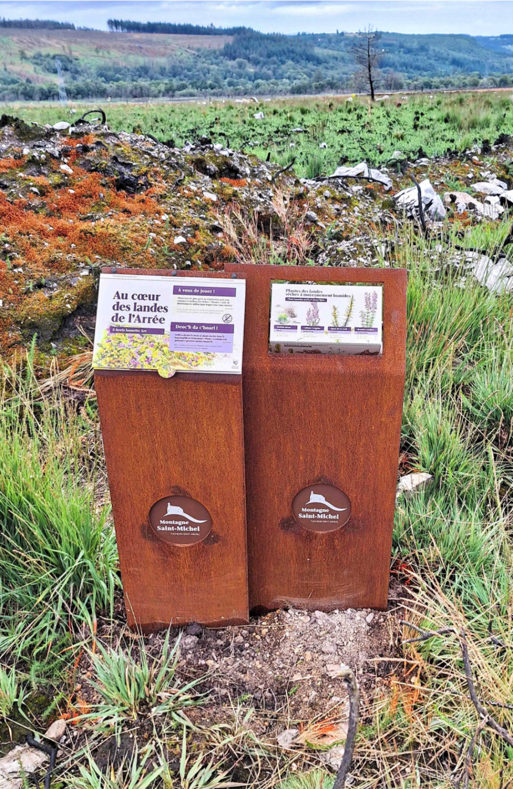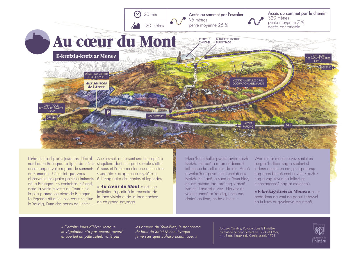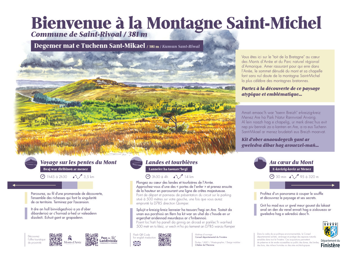 Signalétique du site patrimonial de la Montagne Saint-Michel à Saint-Rivoal (29).